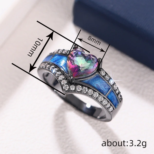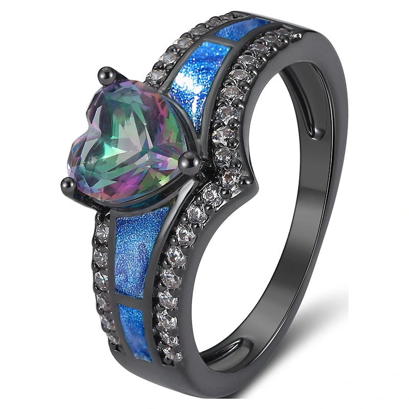 Anillo de amor con pintura al óleo de goteo de metal colorido, dulce, fresco, oscuro, barroco, joyería de personalidad de nicho