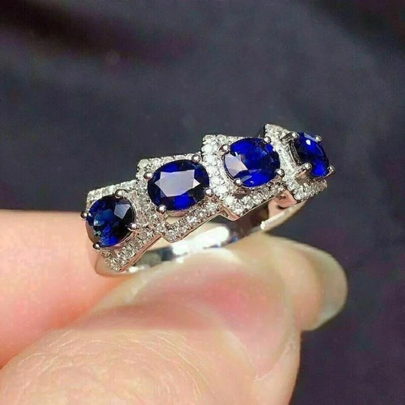 Anillo de circonita azul Klein, nuevo, estilo elegante europeo y americano, accesorio para dama, anillo estilo revista retro.