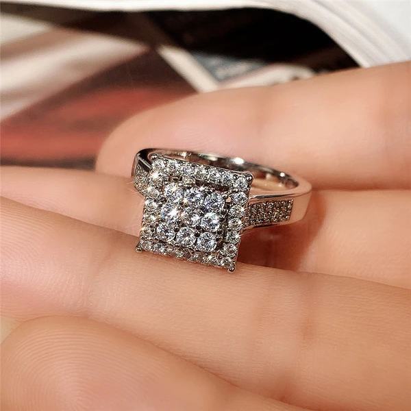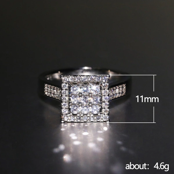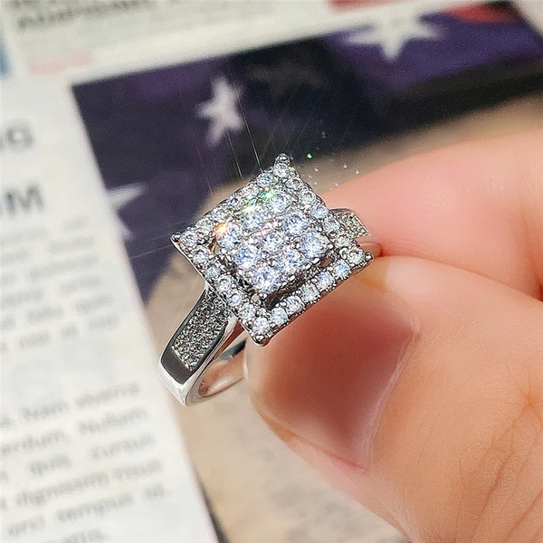 Anillo cuadrado de princesa de gran venta, nuevo, estilo europeo y americano, con incrustaciones de circonita, joyería para mujer, anillo de compromiso y propuesta.