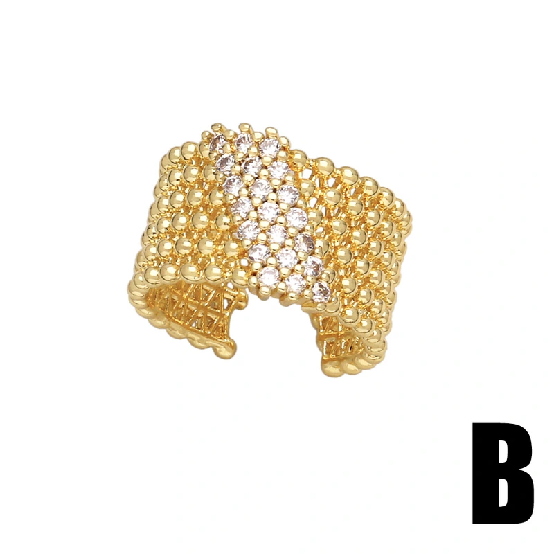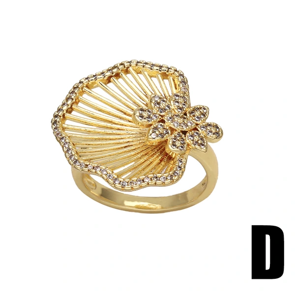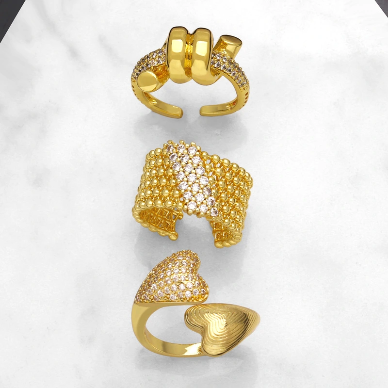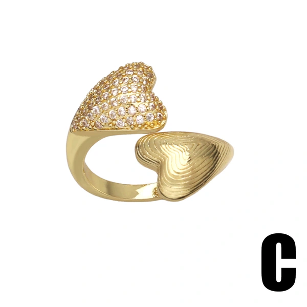 Anillo de circonita con incrustaciones de amor para mujer, chapado en oro, anillo abierto ajustable con diseño de loto, Rip32