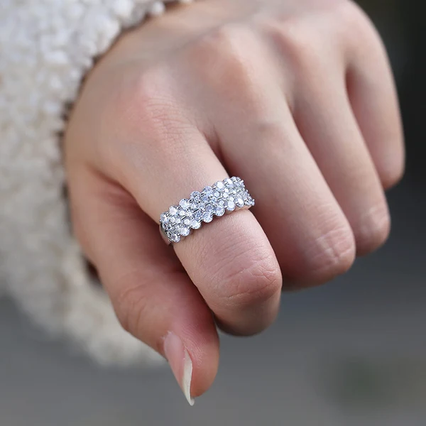 Anillo de circonita redonda con diamantes de doble fila para mujer, de lujo, chapado en cobre y plata, joyería