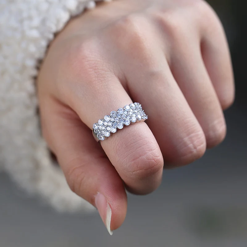 Anillo clásico de estilo celebridad con microincrustaciones, combinable con todo, con circonita de seis garras, anillo de bodas de lujo ligero de estilo europeo y americano.