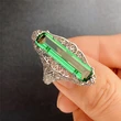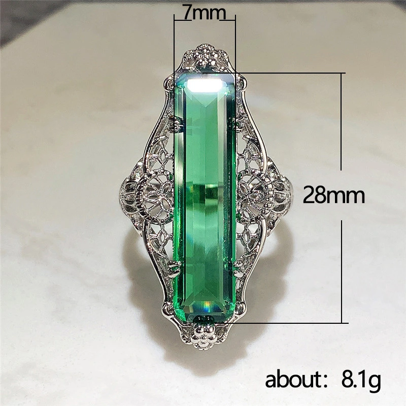 Anillo de circonita verde con diseño hueco retro de joyería de moda para mujer, anillo de temperamento para mujer