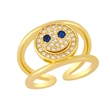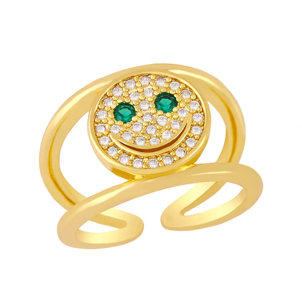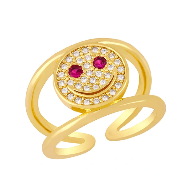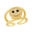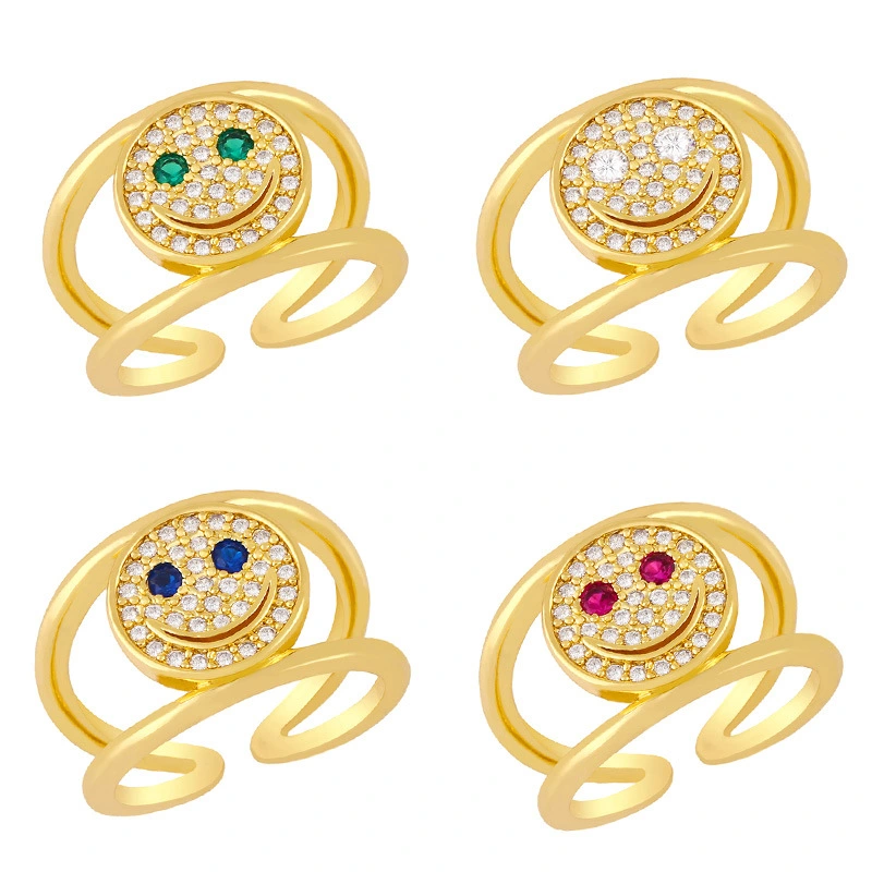 Anillo de circonitas con cara sonriente, diseño de nicho europeo y americano, chapado en oro de 18 quilates, doble capa, rim59.
