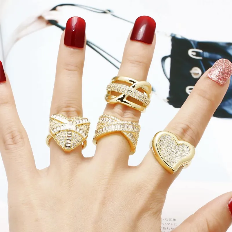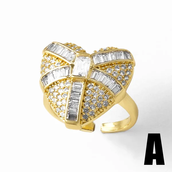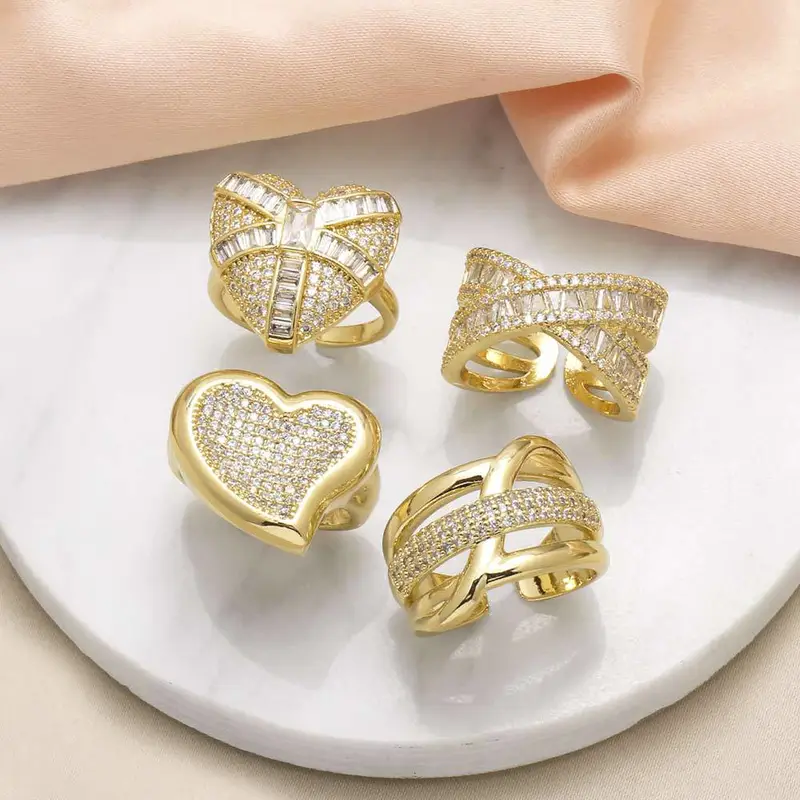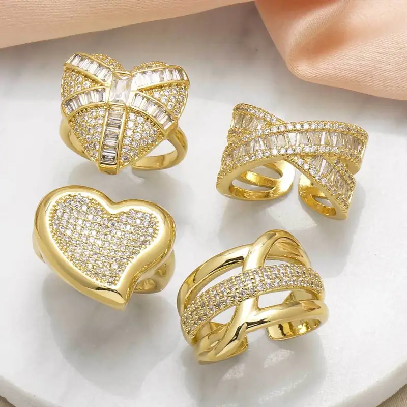 Anillo de circonitas con forma de corazón para mujer, chapado en cobre, oro de 18 quilates, rih81