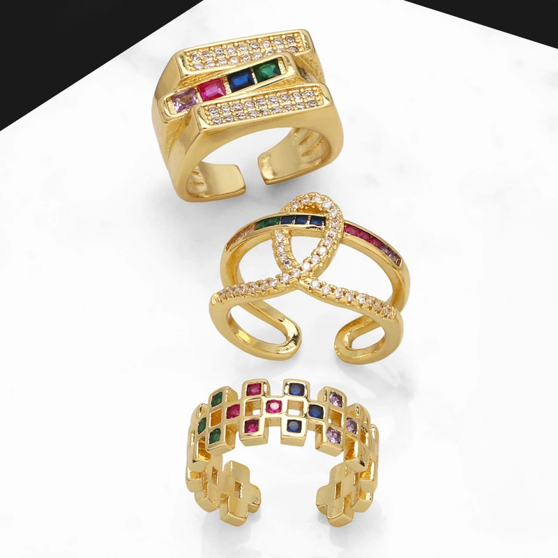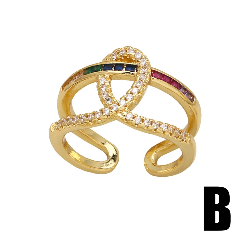 Anillo de circonitas de colores con incrustaciones, diseño de nicho, anillo abierto de alta gama, ris49
