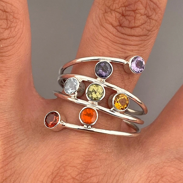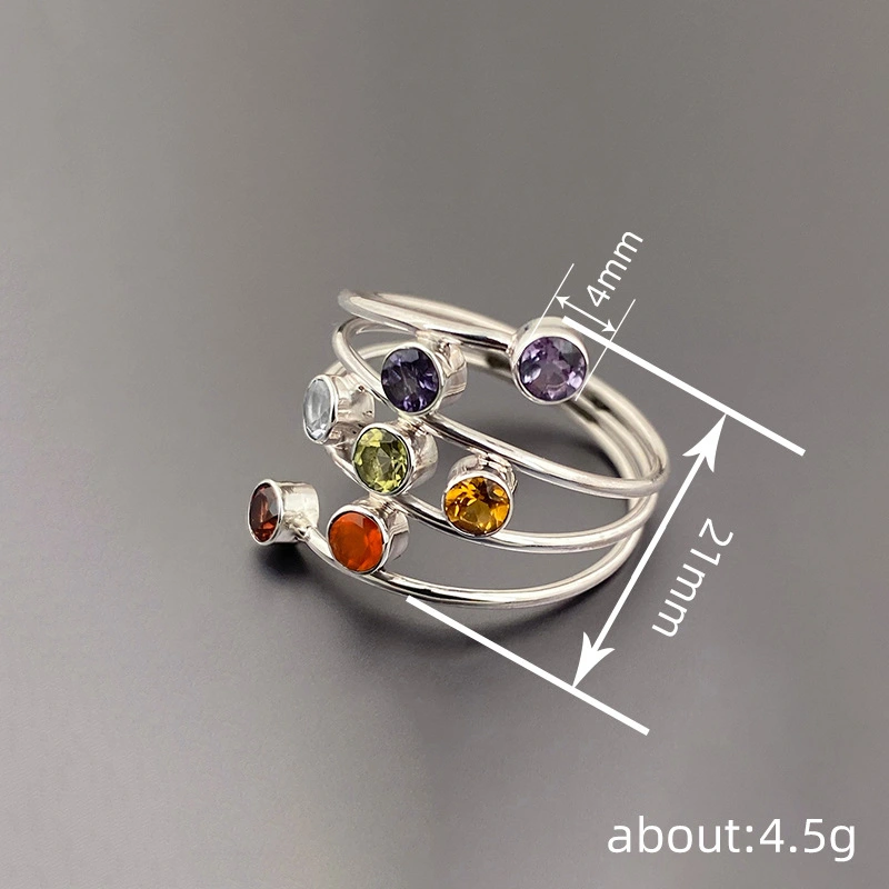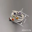 Anillo de colores combinados de forma especial para mujer, diseño llamativo de circonitas coloridas, anillo envuelto con joyería de línea multicapa