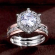 Anillo de compromiso con circonita bicolor, joyería europea y americana, moderno y creativo, para bodas y fiestas.
