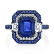 Anillo de compromiso de aleación galvanizada con diamantes de imitación azules para mujer, nuevo y de moda, venta al por mayor