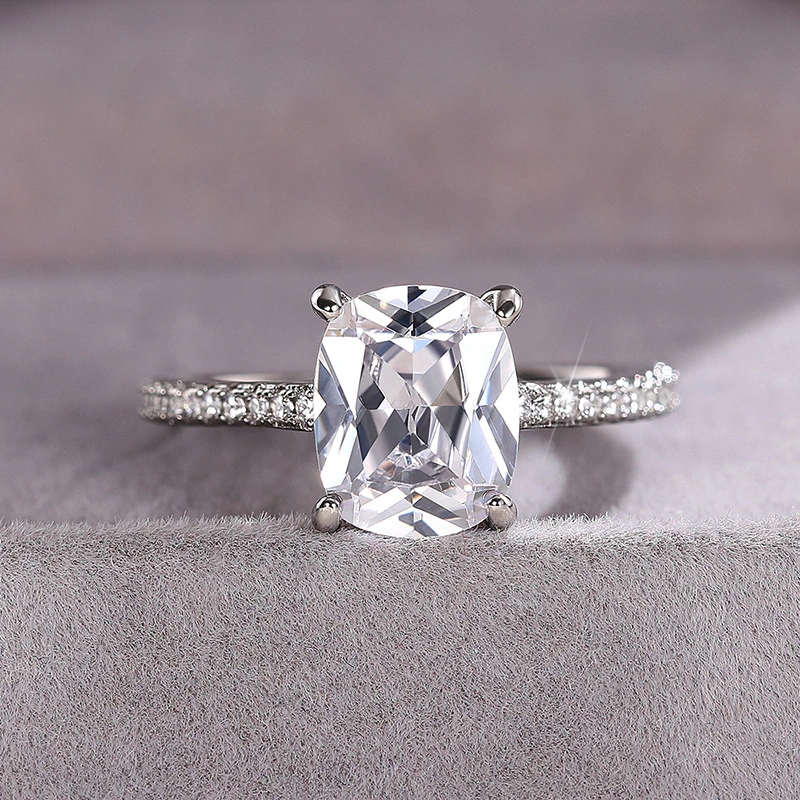 Anillo clásico de estilo celebridad con microincrustaciones, combinable con todo, con circonita de seis garras, anillo de bodas de lujo ligero de estilo europeo y americano.