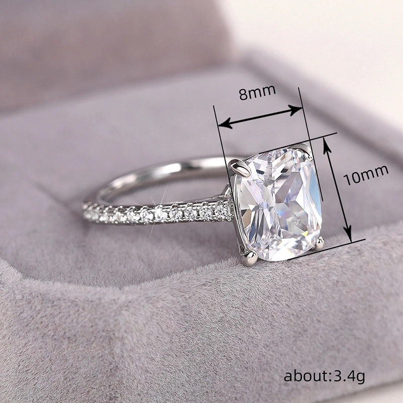 Anillo cuadrado de princesa de gran venta, nuevo, estilo europeo y americano, con incrustaciones de circonita, joyería para mujer, anillo de compromiso y propuesta.