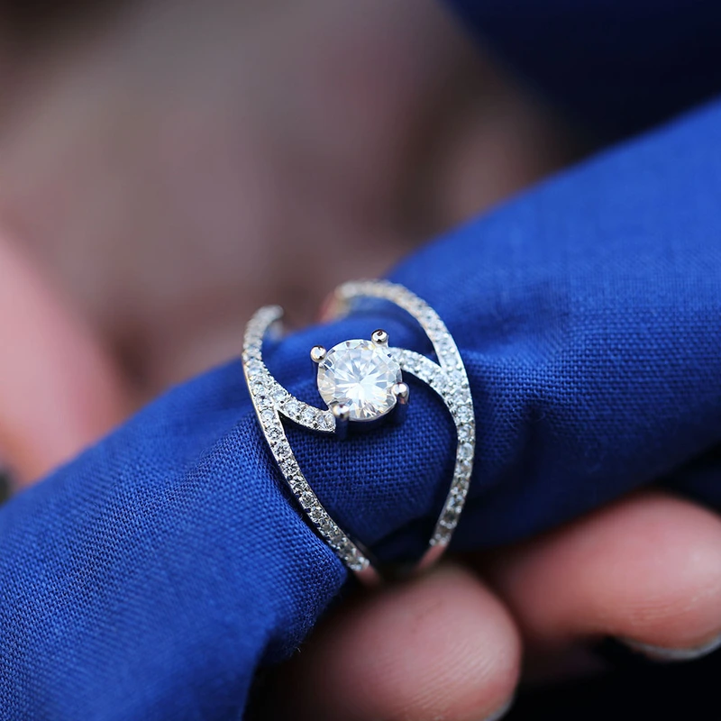 Anillo de compromiso y boda para mujer, nuevo y creativo, de moda, popular y hermoso, con circonitas curvas.
