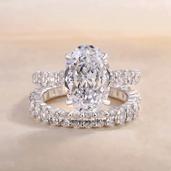 Anillo de diamantes completo para mujer, moda de lujo, anillo de pareja de circonitas grandes, temperamento de personalidad, dos juegos de anillos