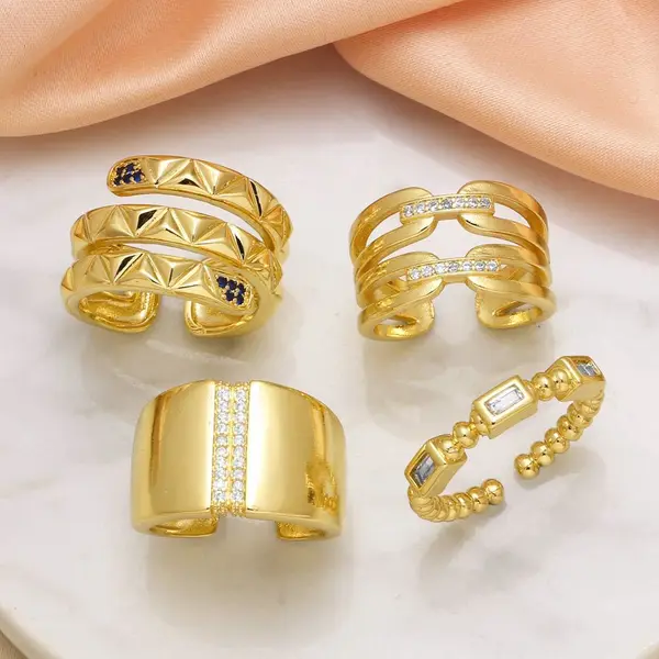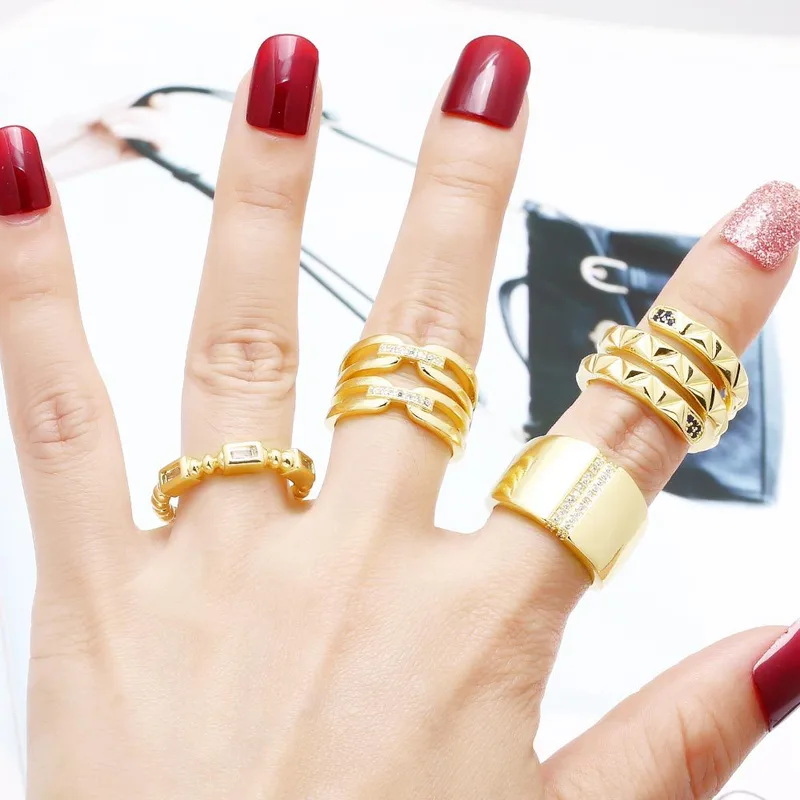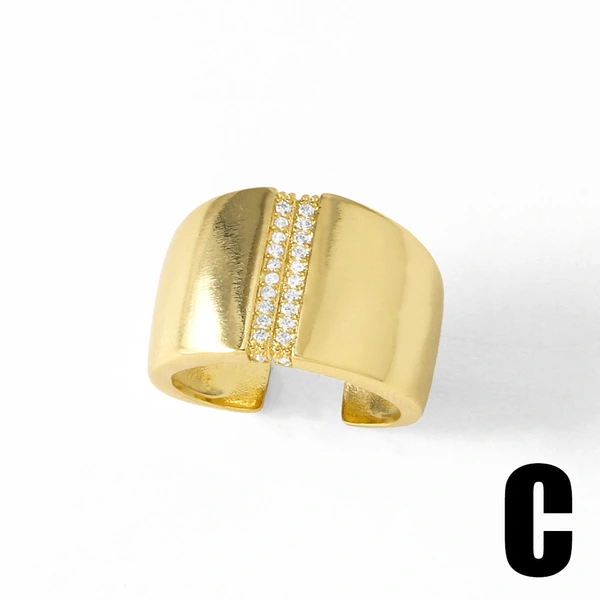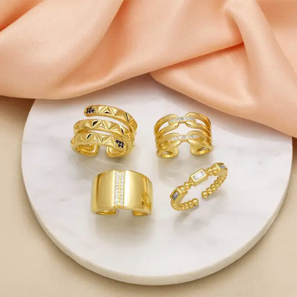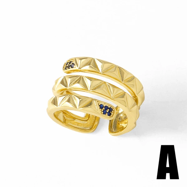 Anillo de doble capa irregular para mujer, chapado en cobre, oro de 18 quilates, pulido, abierto, rih93