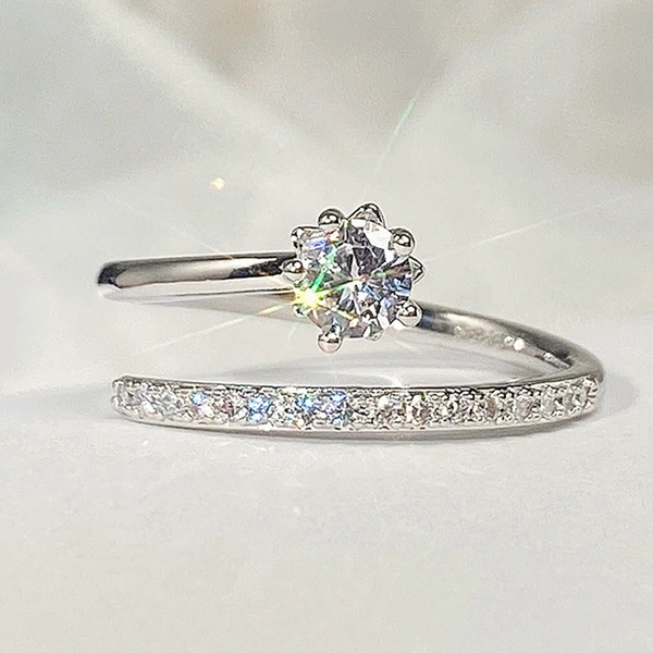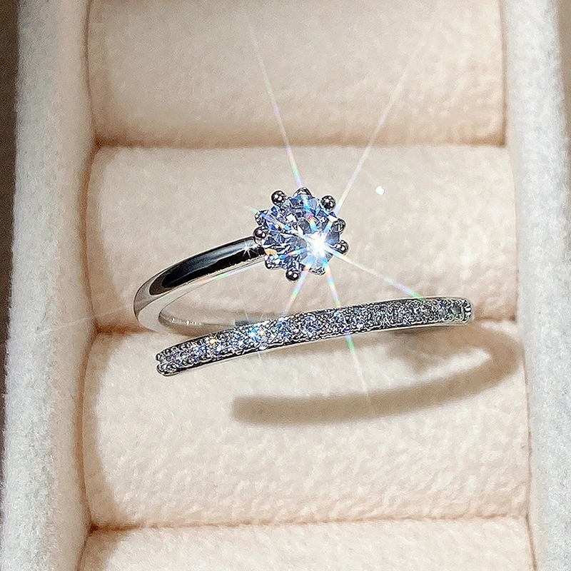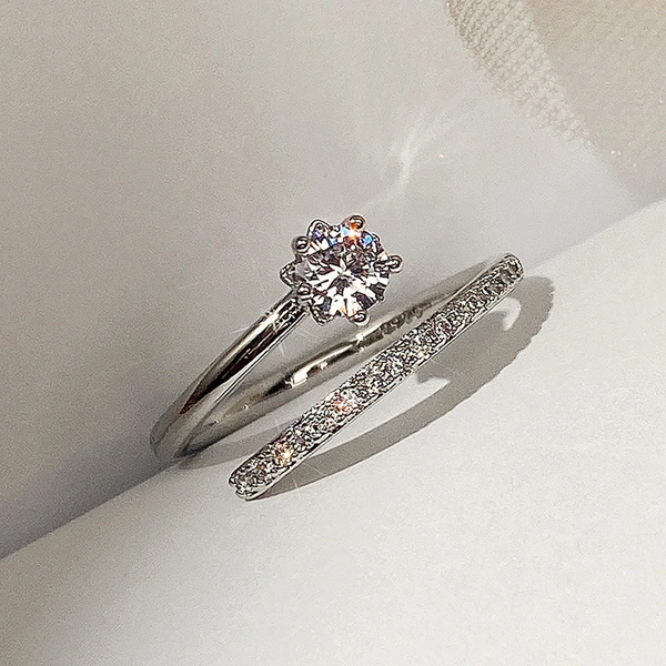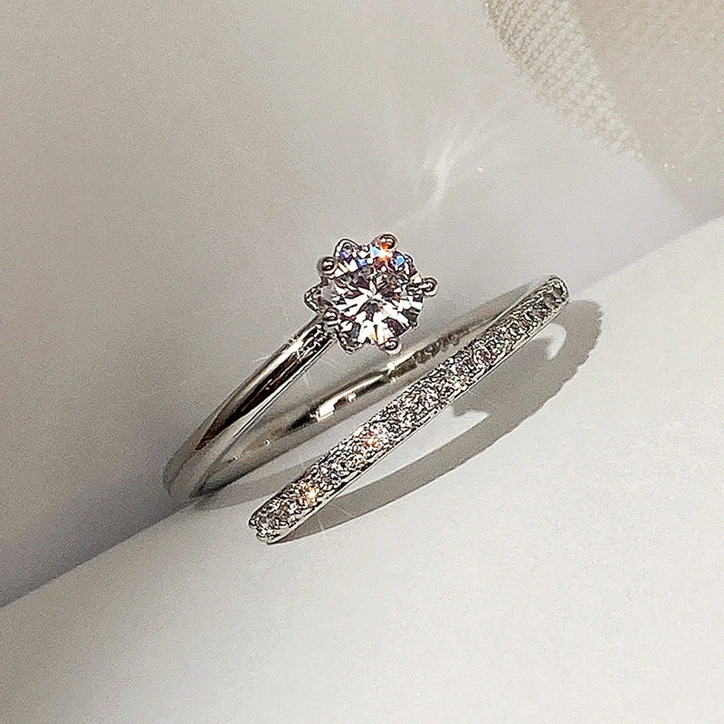 Anillo clásico de estilo celebridad con microincrustaciones, combinable con todo, con circonita de seis garras, anillo de bodas de lujo ligero de estilo europeo y americano.