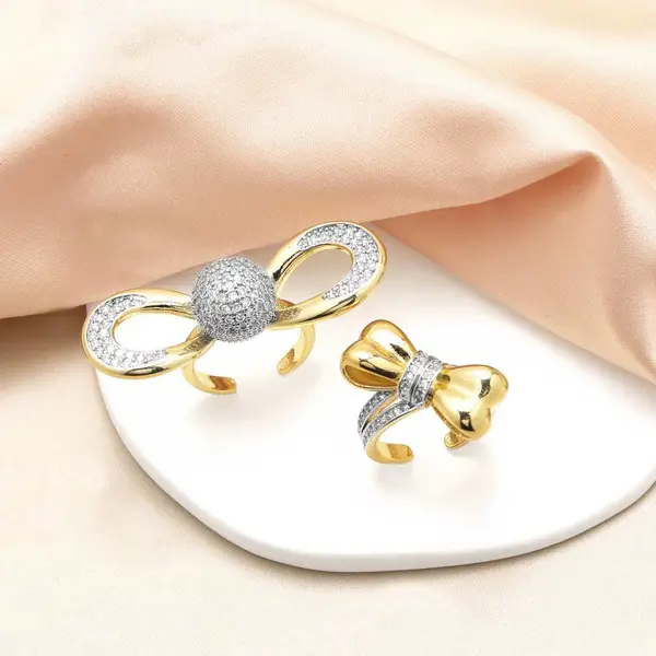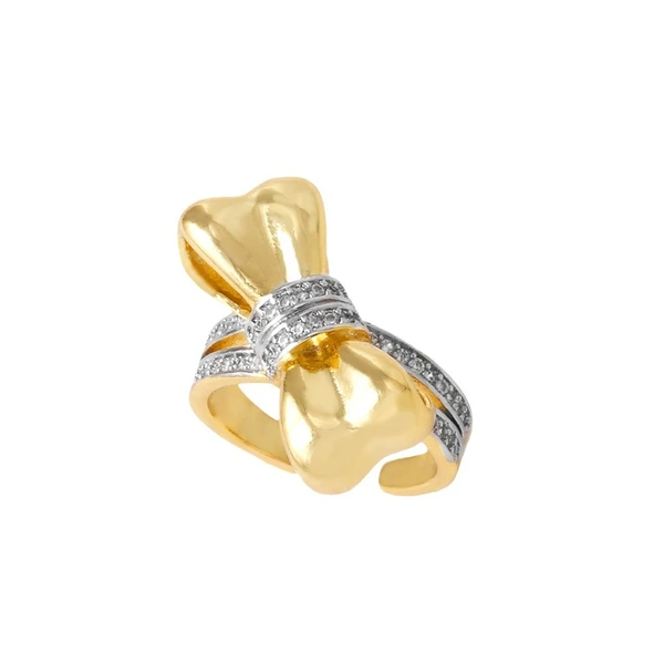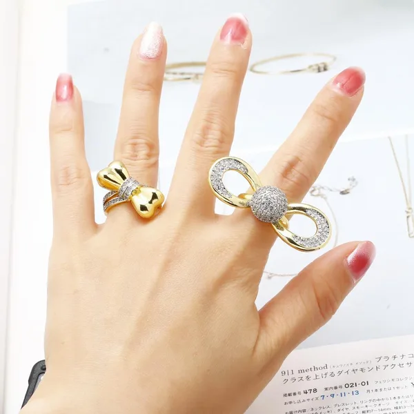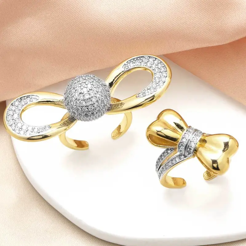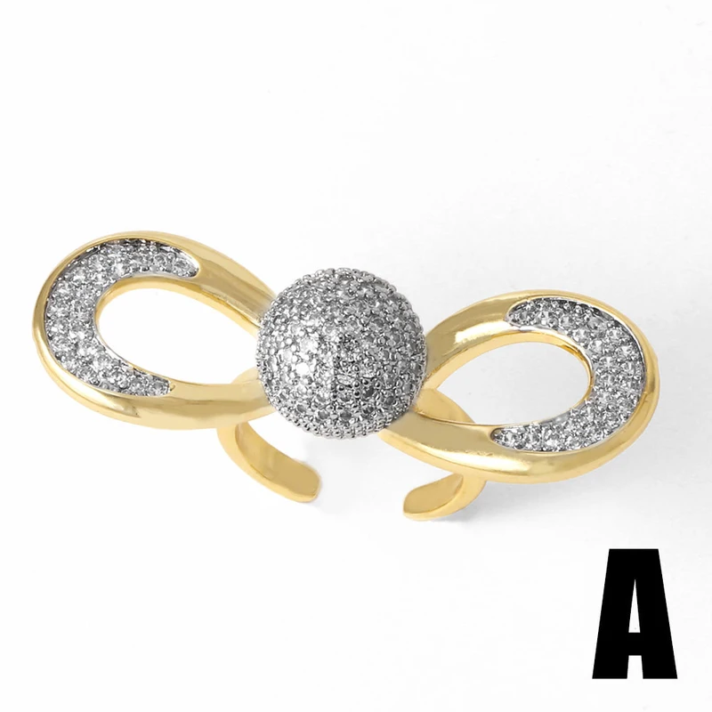 Anillo de lazo para mujer, muy popular en Europa y Estados Unidos, chapado en cobre y oro auténtico con incrustaciones de circonita, anillo abierto rih51
