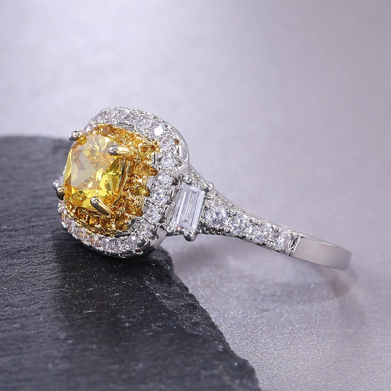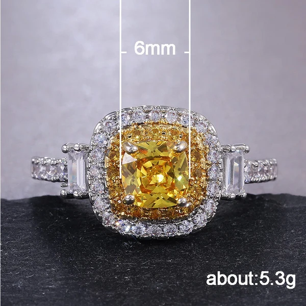Anillo cuadrado de princesa de gran venta, nuevo, estilo europeo y americano, con incrustaciones de circonita, joyería para mujer, anillo de compromiso y propuesta.
