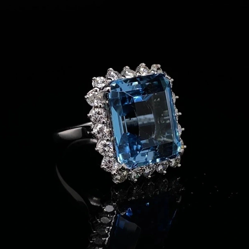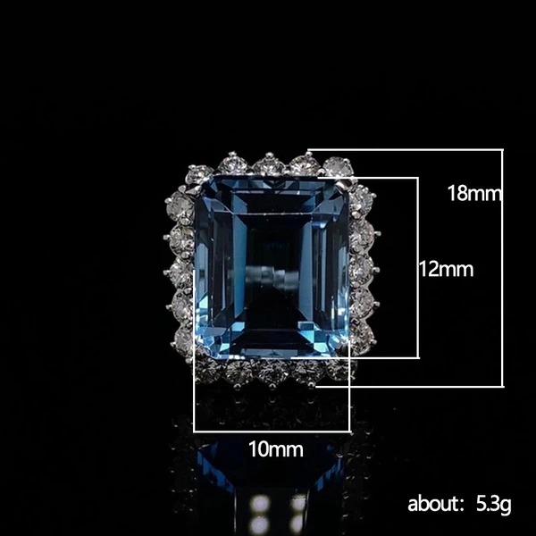 Anillo de lujo con topacio y zafiro simulados, lleno de diamantes, estilo princesa cuadrado, ¡un producto nuevo y de gran venta!