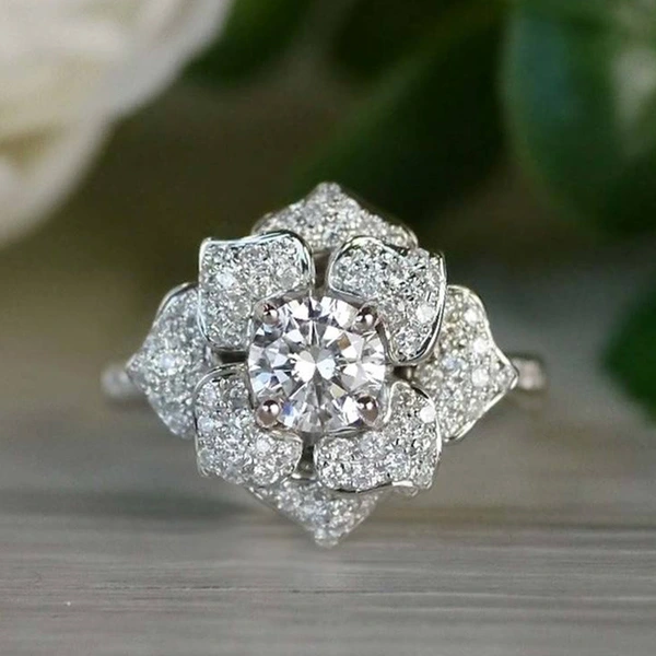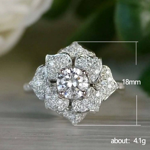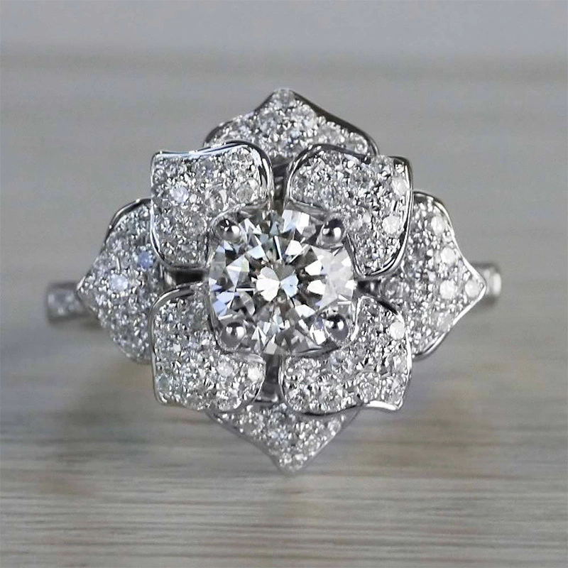 Anillo de lujo ligero de estilo europeo y americano, anillo de lujo con flor de circón y diamantes, ideal para actividades comerciales femeninas, joyería de mano.