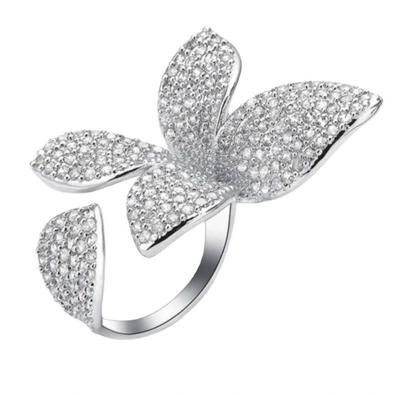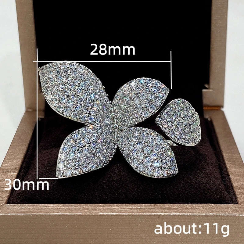 Anillo de mariposa de lujo simple europeo y americano lleno de circonitas, anillo abierto, anillo de moda para mujer.