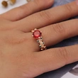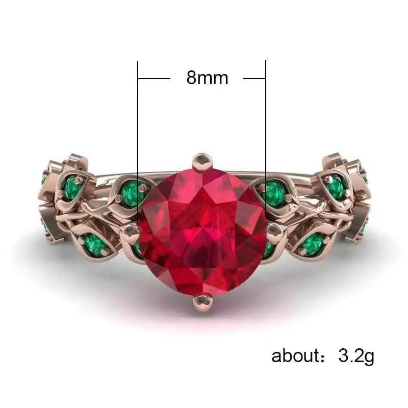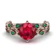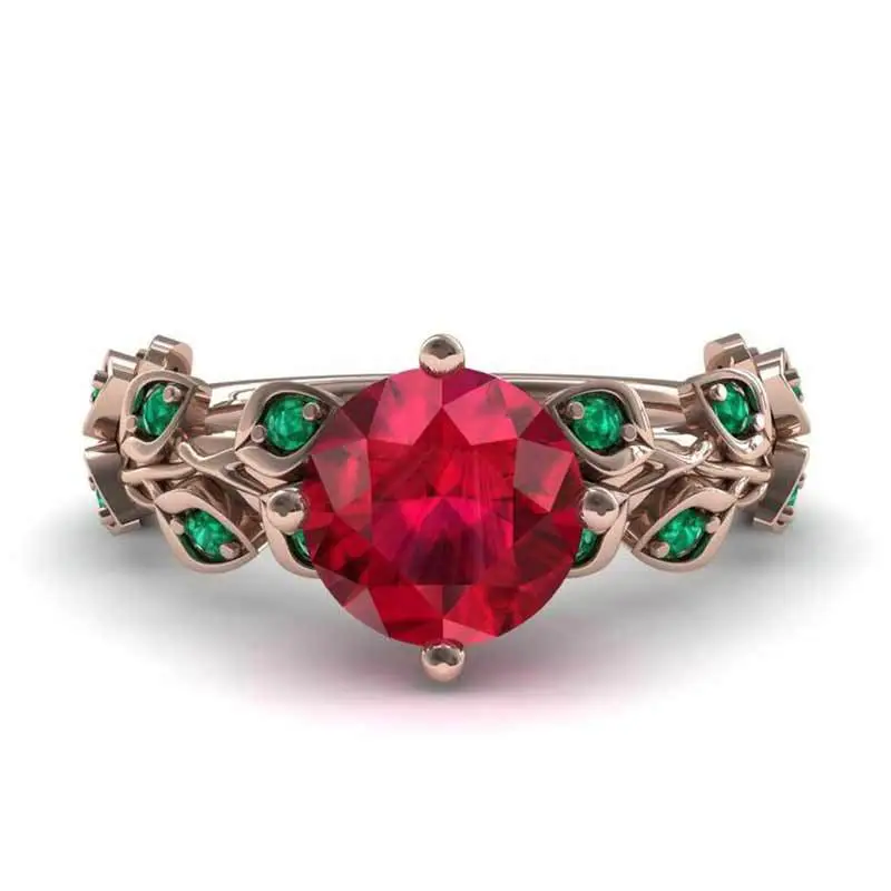 Anillo de mujer con diamantes de colores, nuevo y muy vendido, con flores rojas y hojas verdes, chapado en oro rosa y circonita.