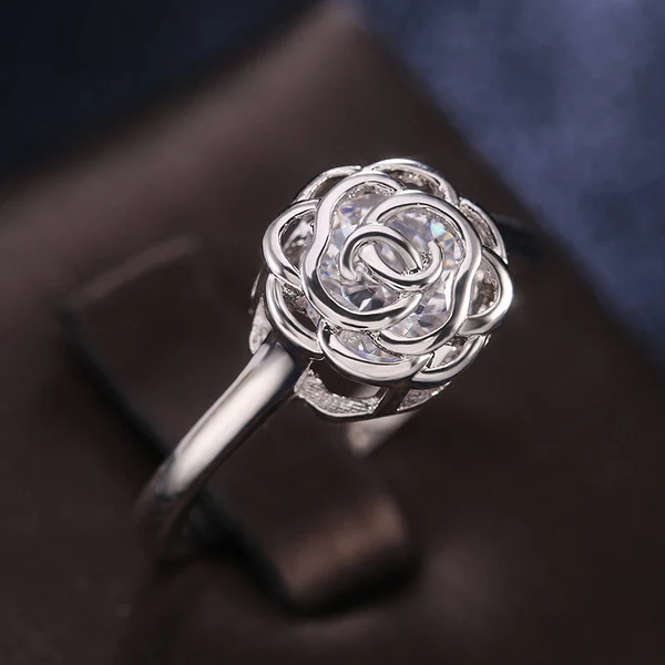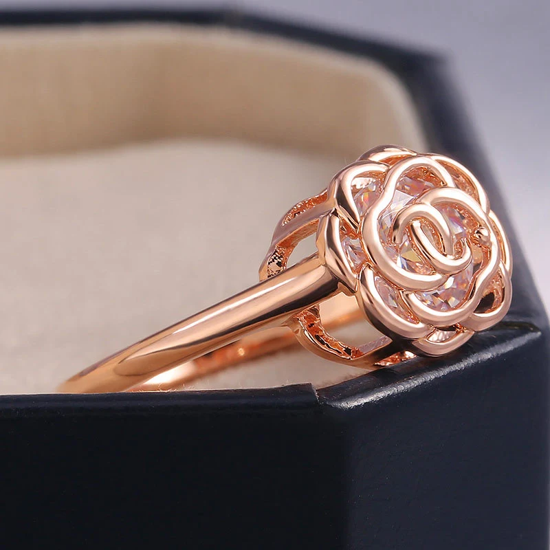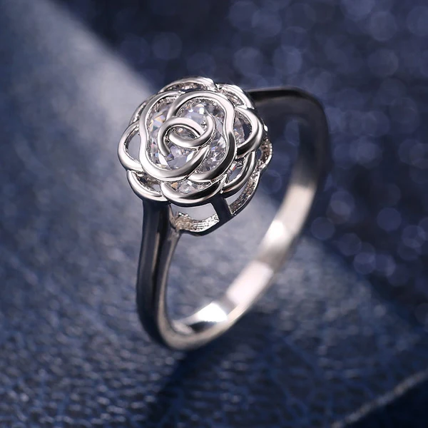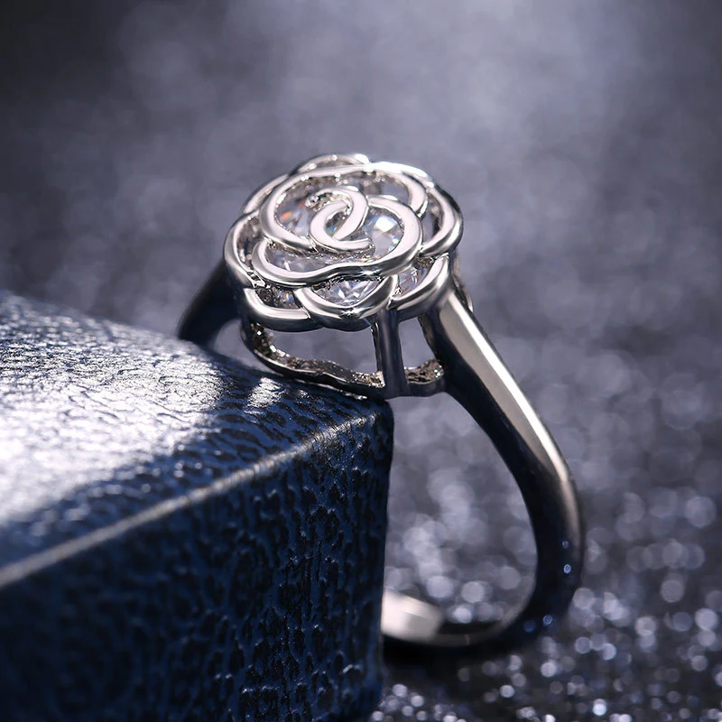 Anillo de mujer con incrustaciones de diamantes, diseño creativo de estación independiente, con incrustaciones de diamantes, joyería hueca de cobre, platino y circonita.