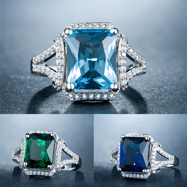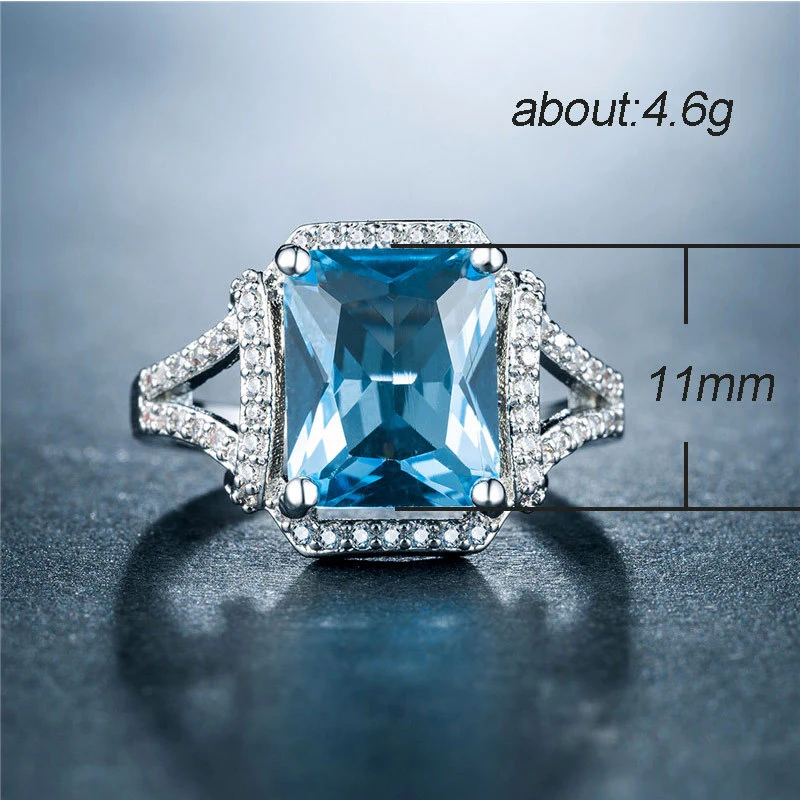 Anillo cuadrado de princesa de gran venta, nuevo, estilo europeo y americano, con incrustaciones de circonita, joyería para mujer, anillo de compromiso y propuesta.