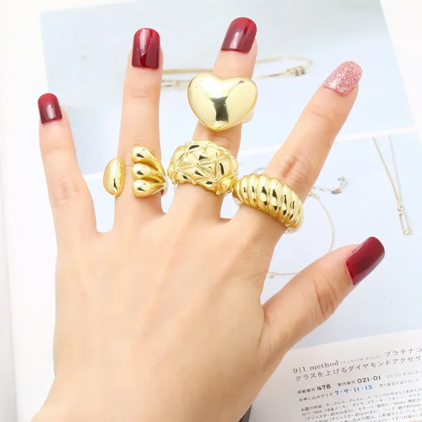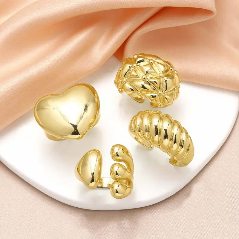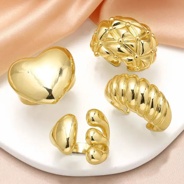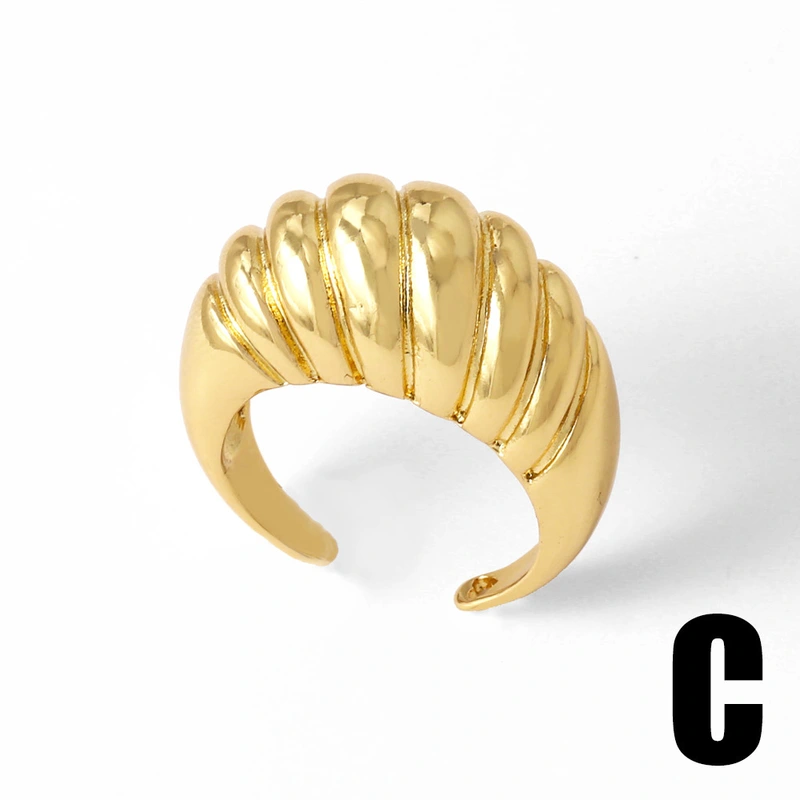 Anillo de oro de 18 quilates con baño de cobre pulido para mujer, abierto, rih42