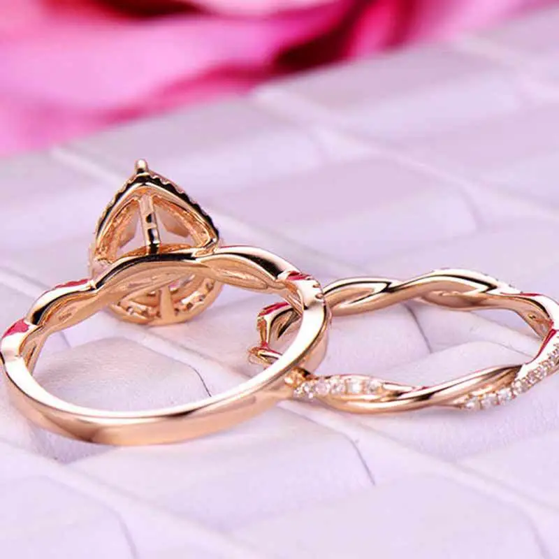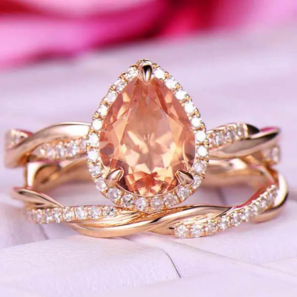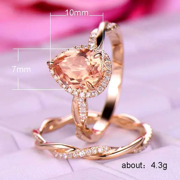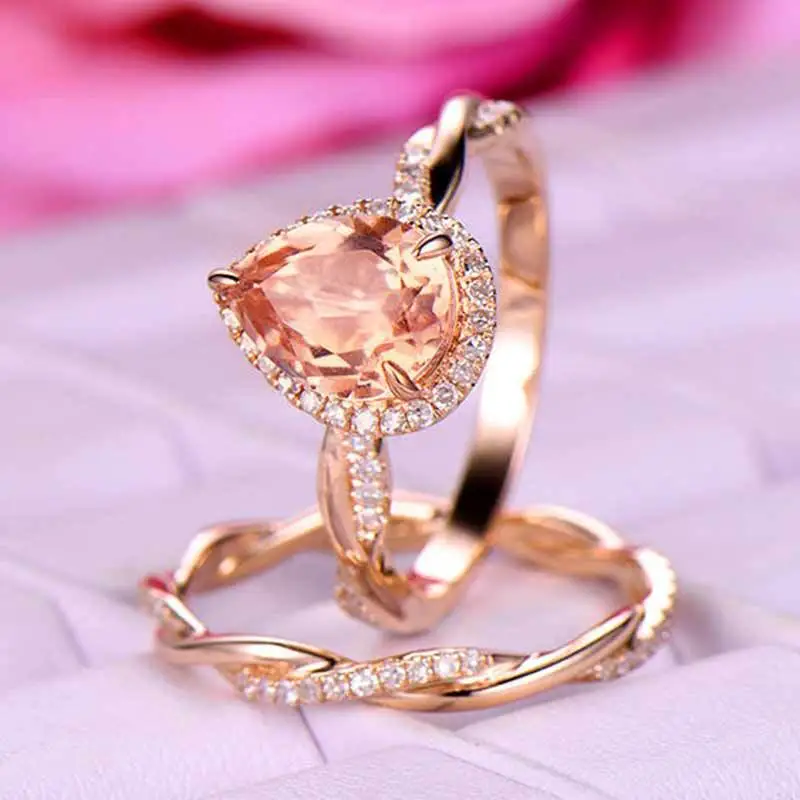 Anillo de oro rosa en forma de lágrima para mujer, muy vendido en Europa y América, con microincrustaciones de circonita, joyería de mano.