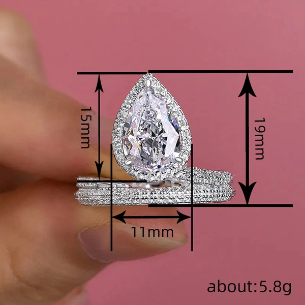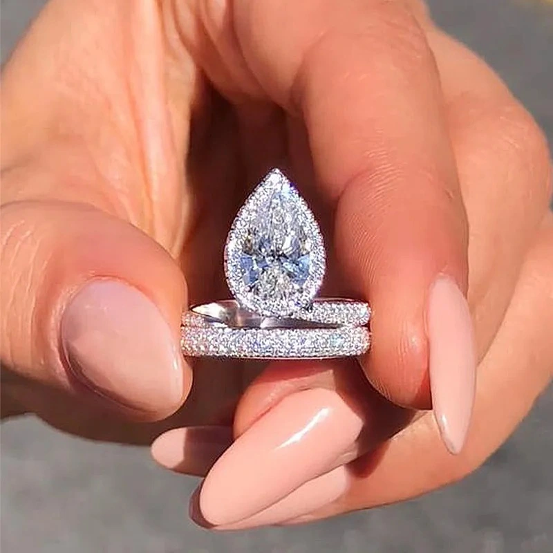 Anillo de princesa con temperamento popular, gota de agua, lleno de diamantes, anillo de compromiso para mujer, boda, partido
