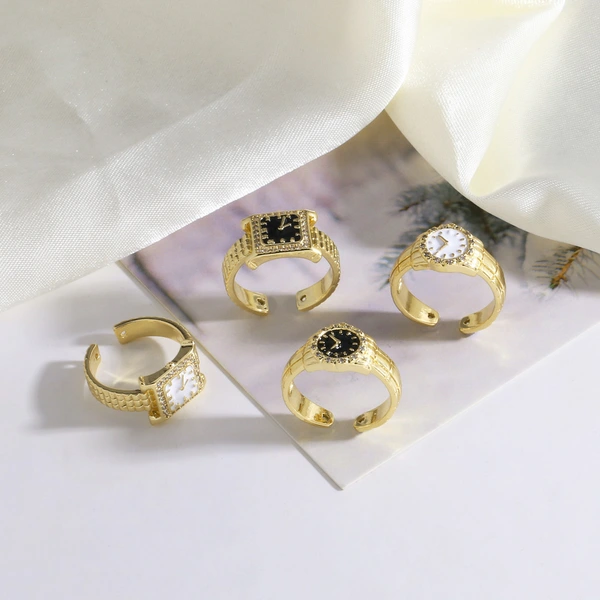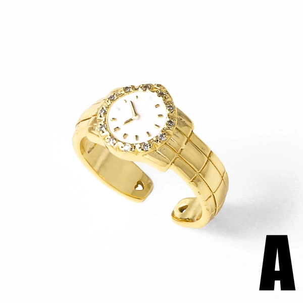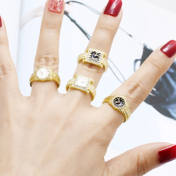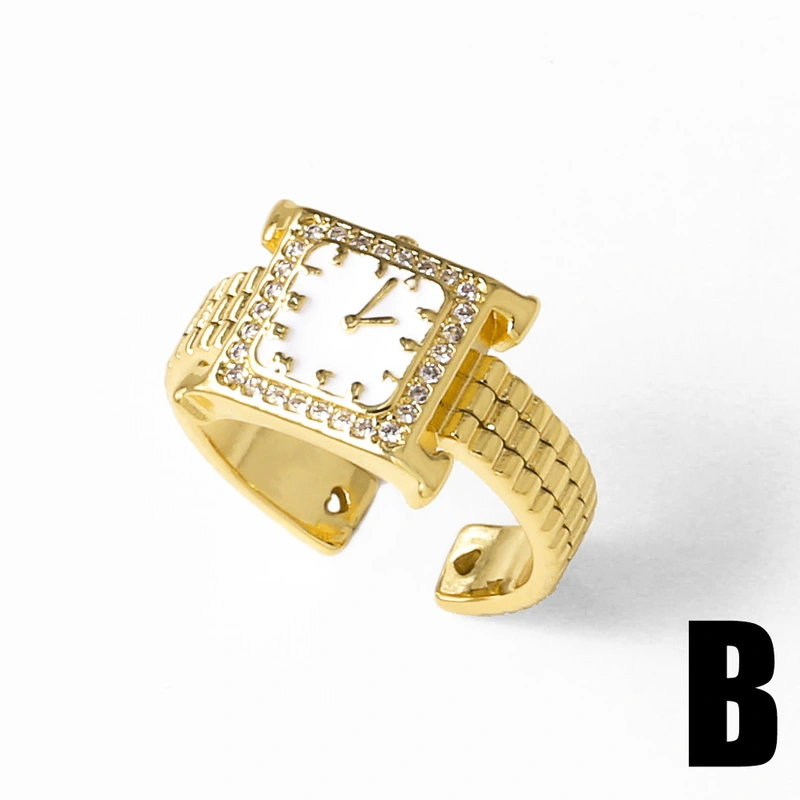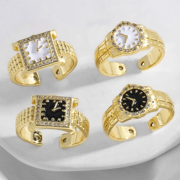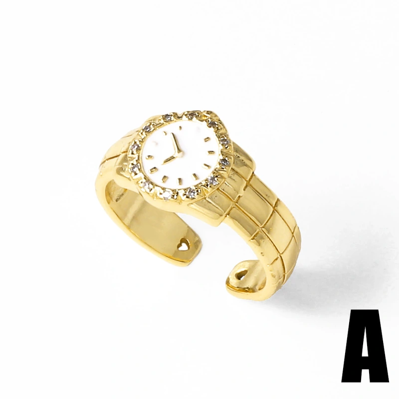 Anillo de reloj de circonita con incrustaciones de oro real chapado en cobre para mujer, joyería de gran venta, ris11