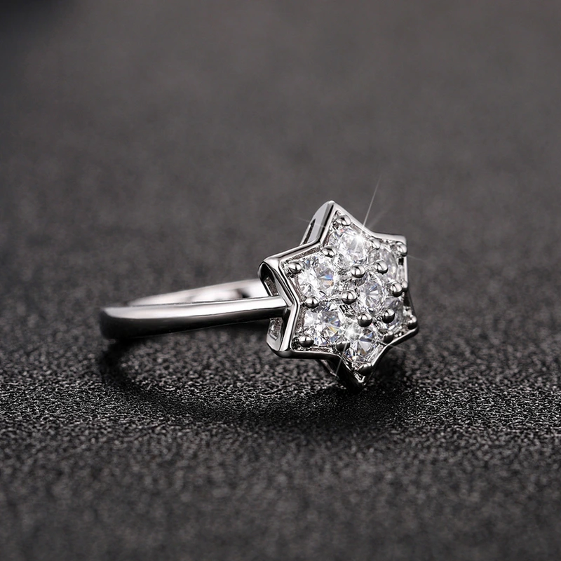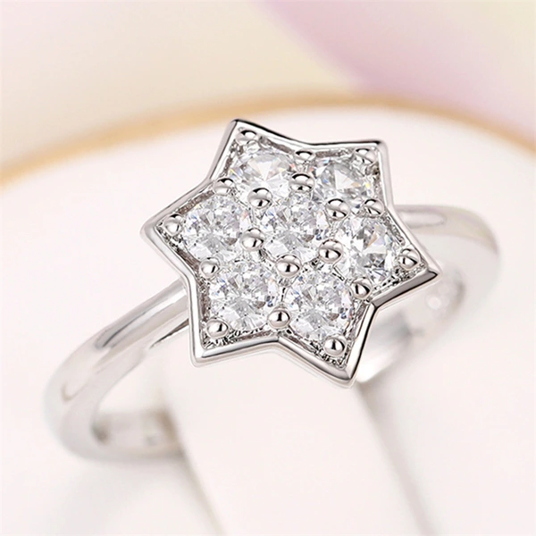 Anillo fino sencillo con forma de estrella pequeña y incrustaciones de cobre, circonita hexagonal, accesorios para anillo femenino