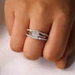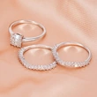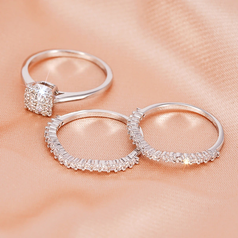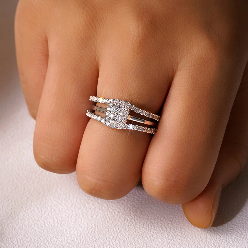 Anillo geométrico de circonita cuadrada de tres secciones, brillante, ligero, de lujo, joyería de boda, anillo de moda