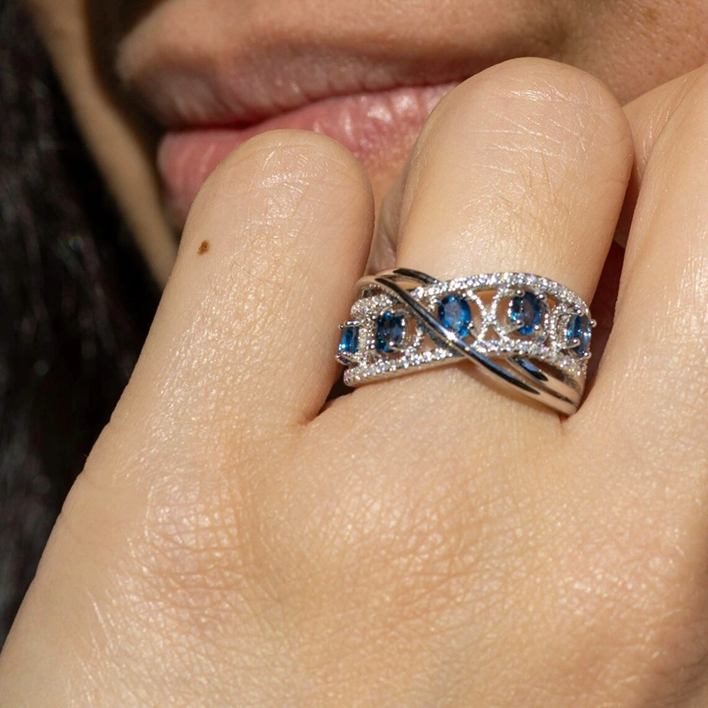 Anillo de diseño de lujo europeo y americano, anillo de circonita con ojo de caballo de temperamento moderno, anillo para dedo índice con diseño hueco multicapa.
