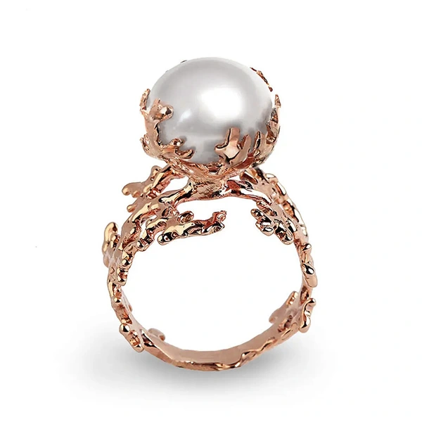Anillo hueco de estilo antiguo de palacio occidental con patrón de rama de árbol, anillo para dedo índice con perla de imitación de coral, venta directa de fábrica