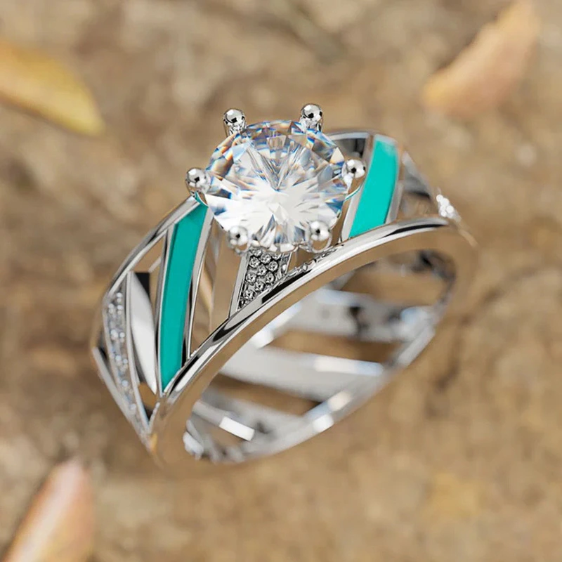 Anillo clásico de estilo celebridad con microincrustaciones, combinable con todo, con circonita de seis garras, anillo de bodas de lujo ligero de estilo europeo y americano.