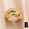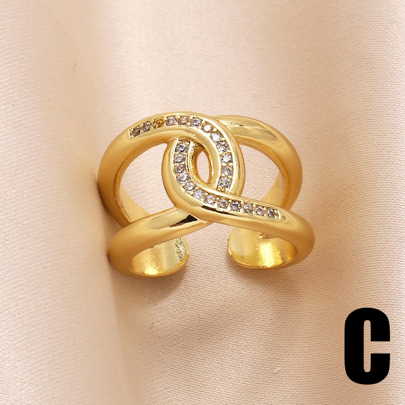 Anillo irregular de gran venta, chapado en oro, con incrustaciones lisas de circonita, anillo cruzado abierto, rin62
