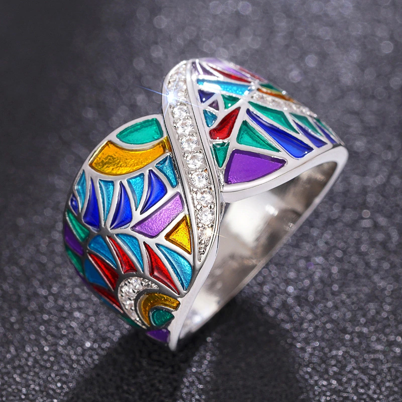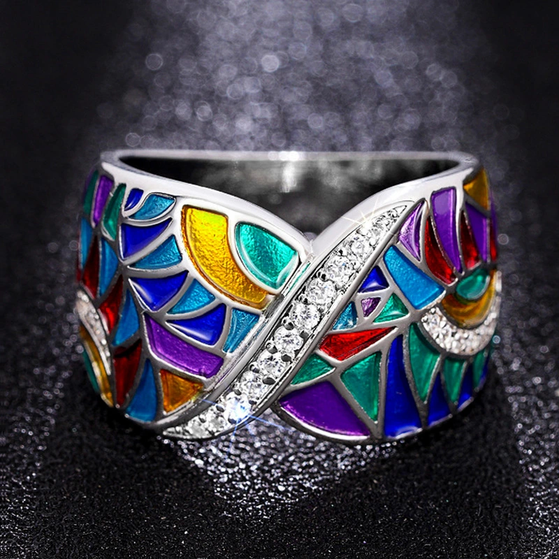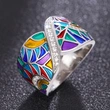 Anillos coloridos de gran venta para mujer, diseño de estilo étnico, anillo único de nicho, joyería geométrica de gota de aceite de moda.