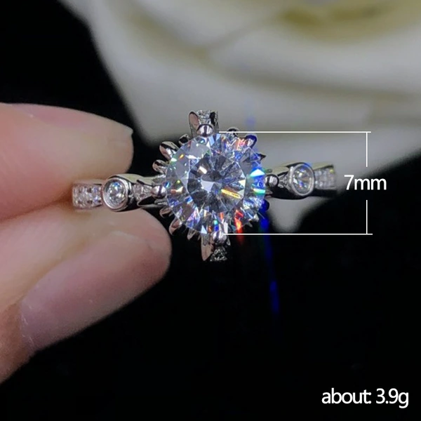 Anillo clásico de estilo celebridad con microincrustaciones, combinable con todo, con circonita de seis garras, anillo de bodas de lujo ligero de estilo europeo y americano.