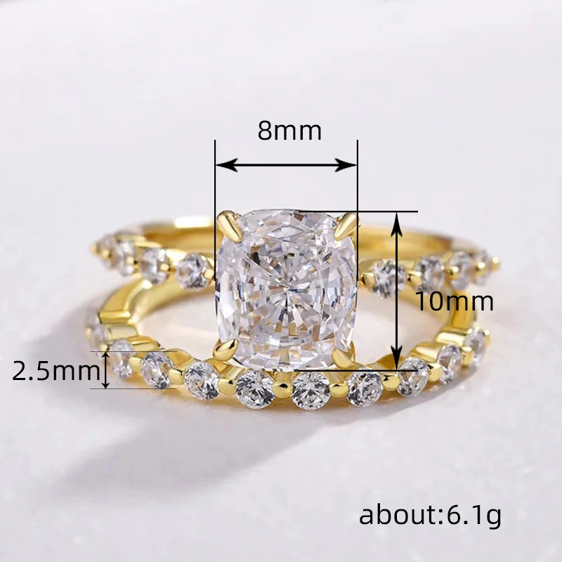 Anillo cuadrado de princesa de gran venta, nuevo, estilo europeo y americano, con incrustaciones de circonita, joyería para mujer, anillo de compromiso y propuesta.