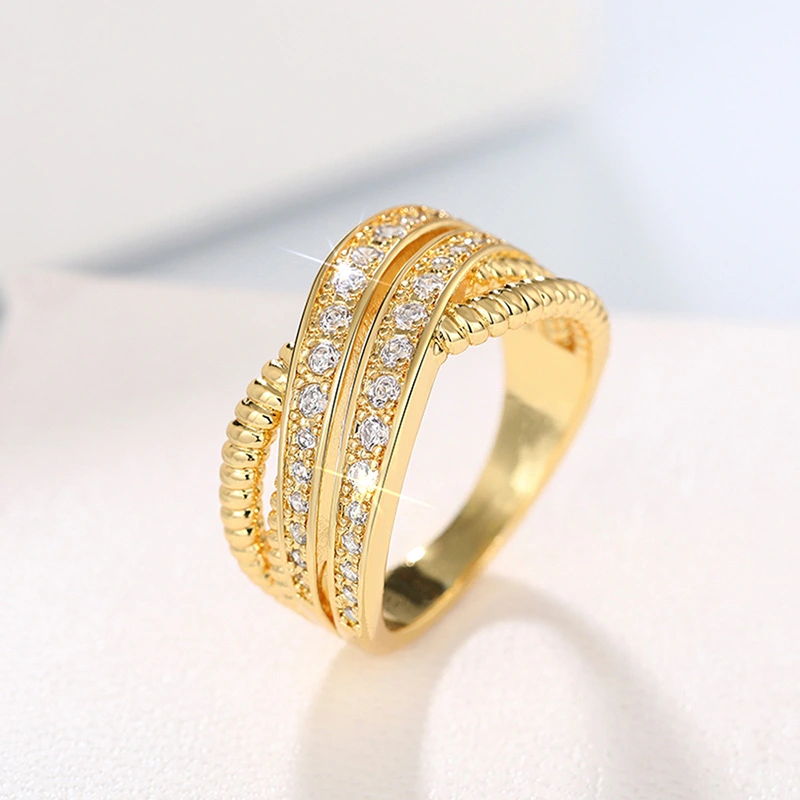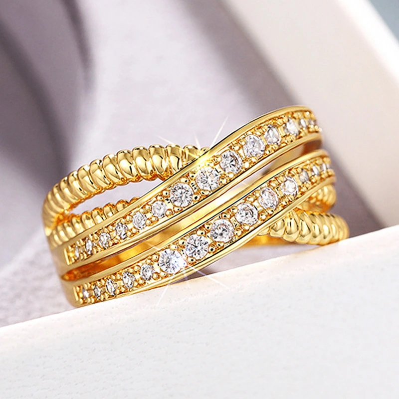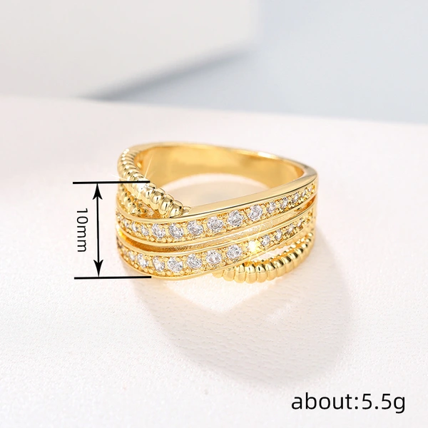 Anillos nuevos, europeos y coreanos, de gran venta, para mujer con diseño de líneas cruzadas, estilo personalizado de celebridades de internet y accesorios de lujo ligeros.