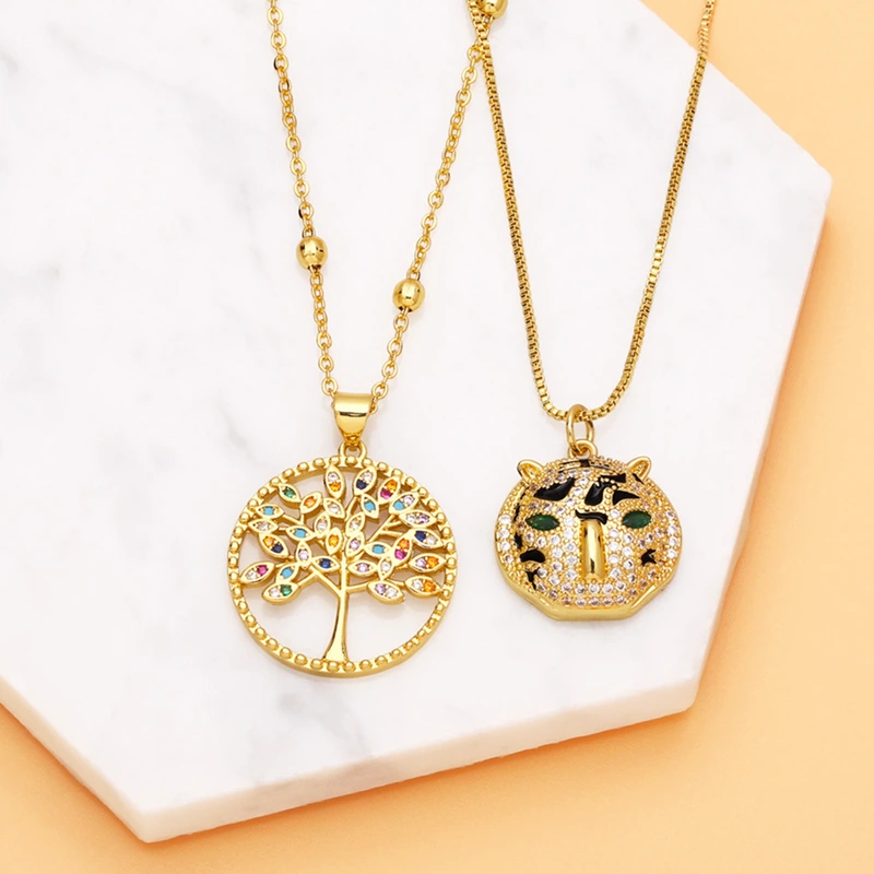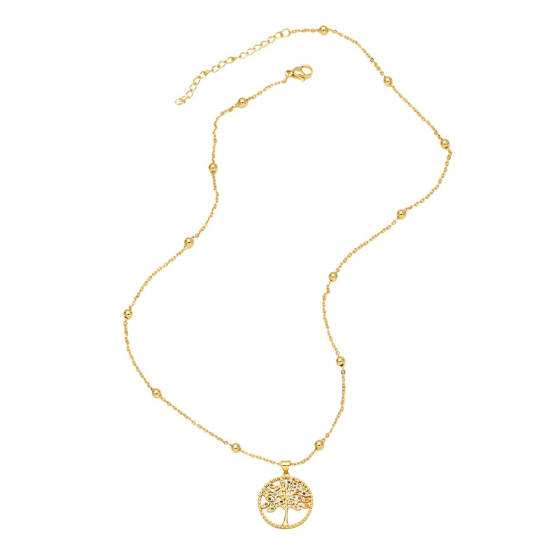 Colgante de árbol de la vida de estilo europeo y americano, muy popular, con personalidad, color simple, circonita, collar de árbol de la vida NKB166