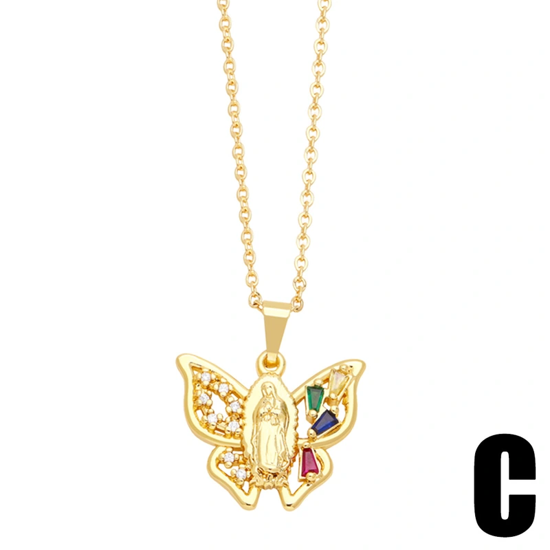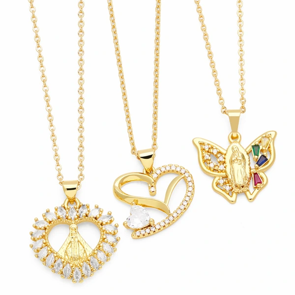 Colgante de Madonna en forma de corazón, estilo europeo y americano, diseño de nicho, collar de Madonna con mariposa, para mujer, NKN72