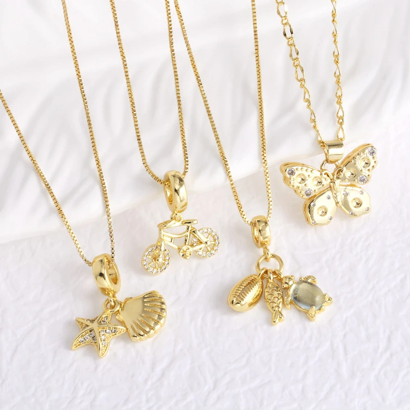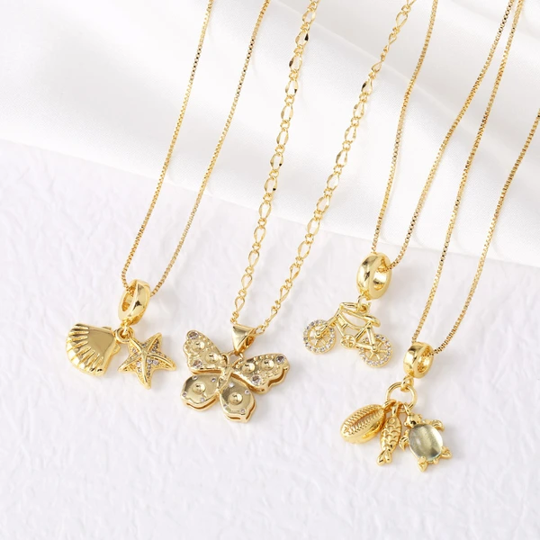 Collar chapado en oro con colgante de mariposa y concha, cadena de clavícula, NKA072, nuevo y de gran venta.