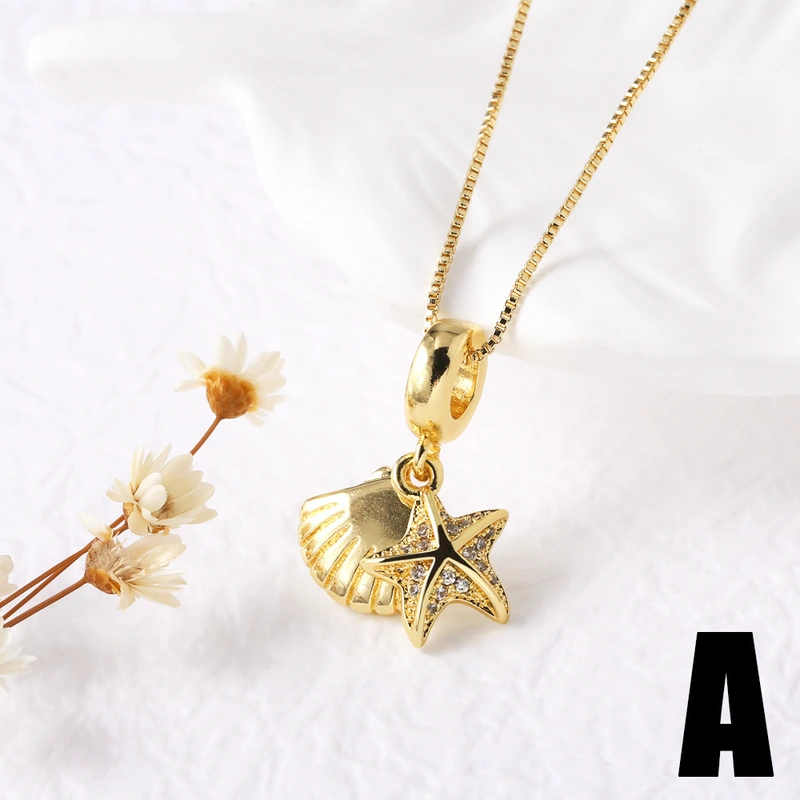 Collar con colgante de concha de mar con 26 letras en inglés, estilo europeo y americano, para mujer, NKB581