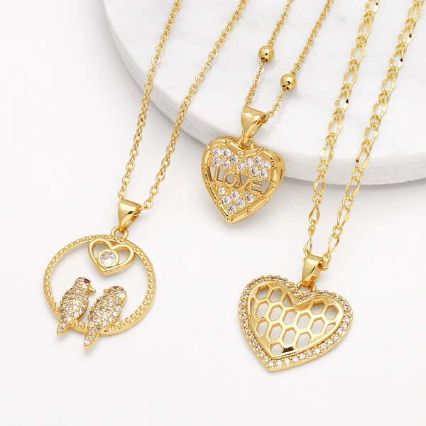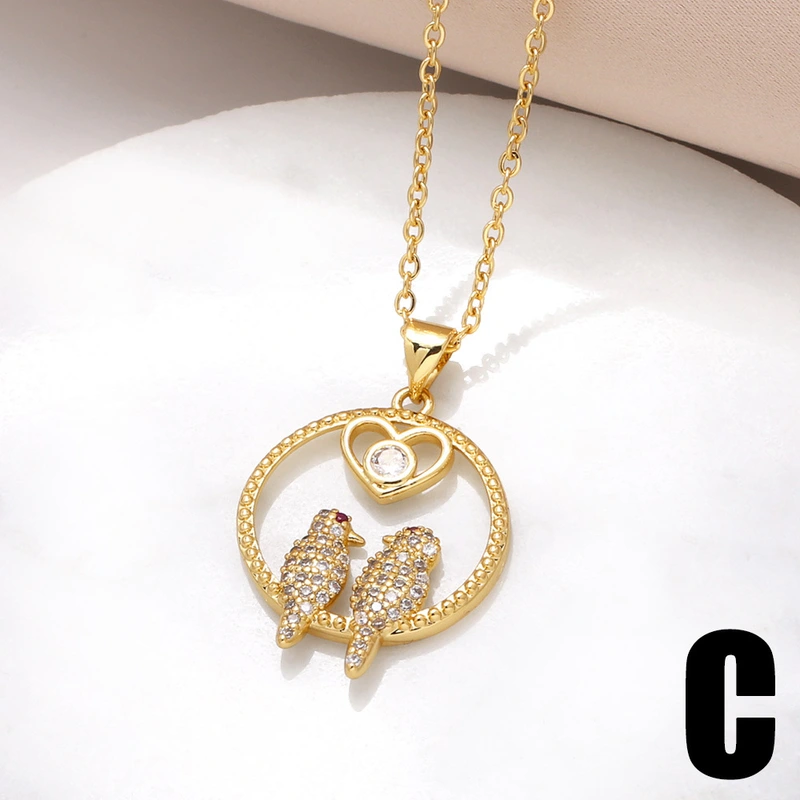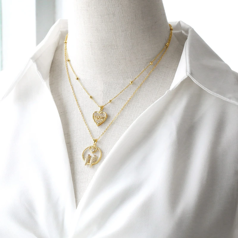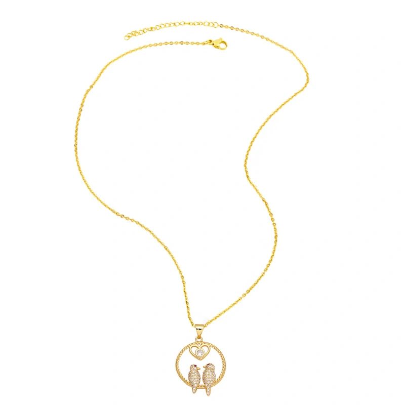 Collar con colgante de amor, chapado en oro, con circonitas y cadena de clavícula, estilo pájaro, NKB094, muy vendido en Europa y Estados Unidos.