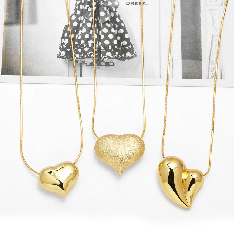Collar con colgante de amor liso, muy popular, chapado en cobre y oro auténtico, ideal para el Día de San Valentín, nky39