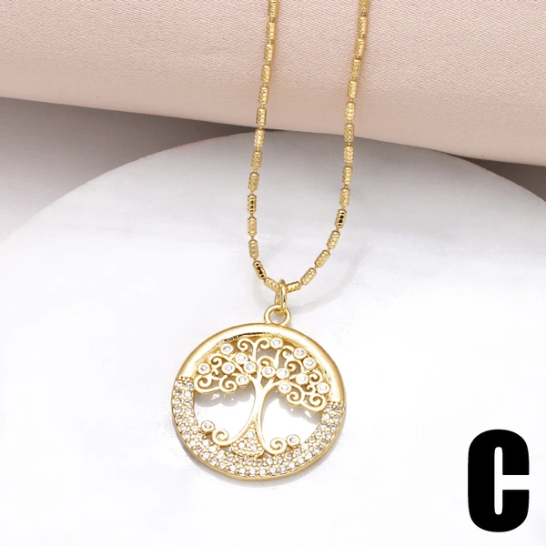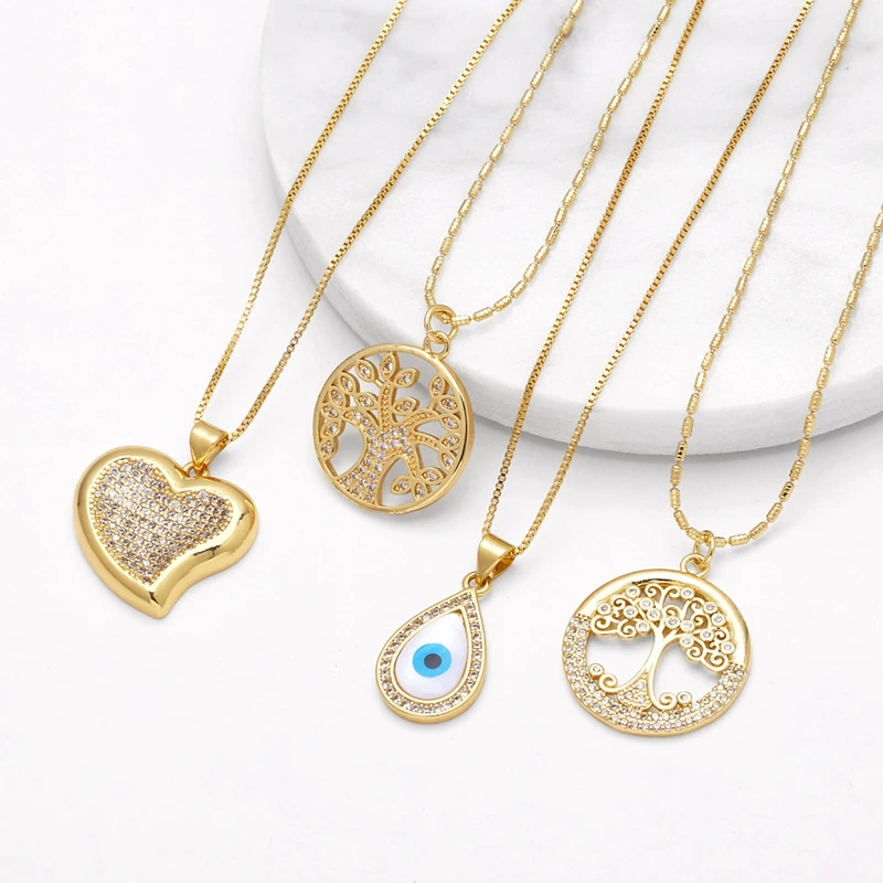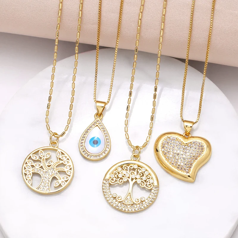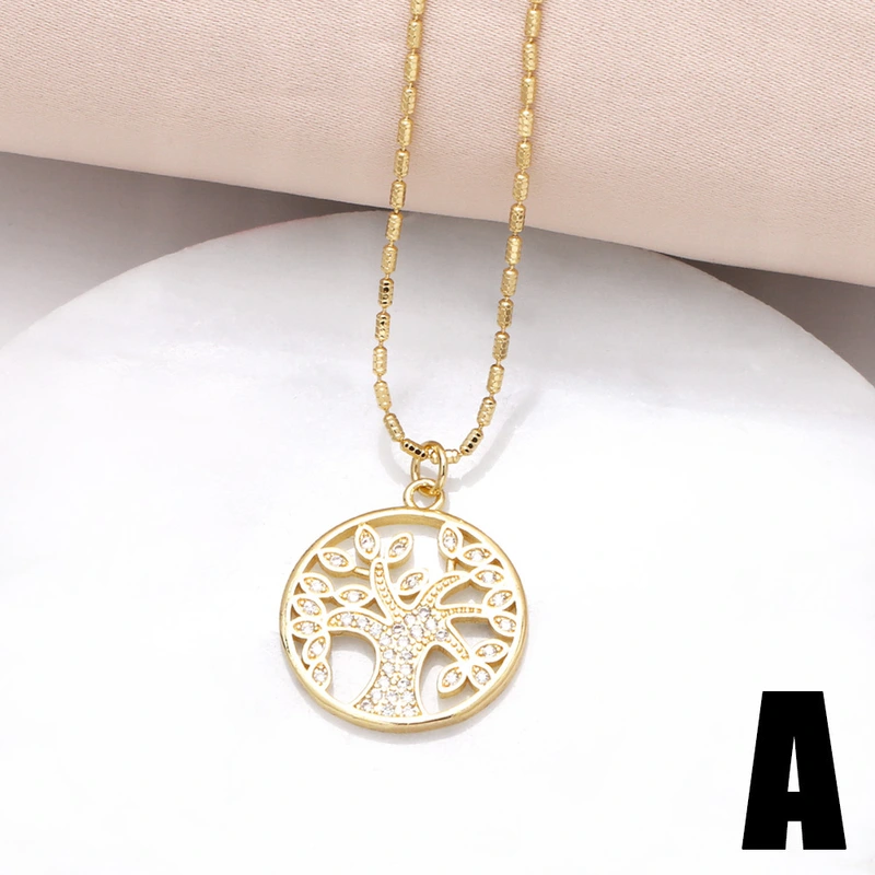 Collar con colgante de árbol de la vida, gota de agua, oro auténtico, chapado en cobre, con incrustaciones de circonitas, para mujer, nkt32