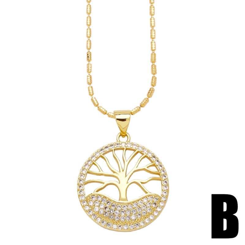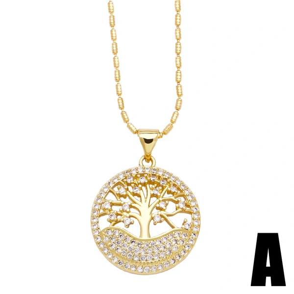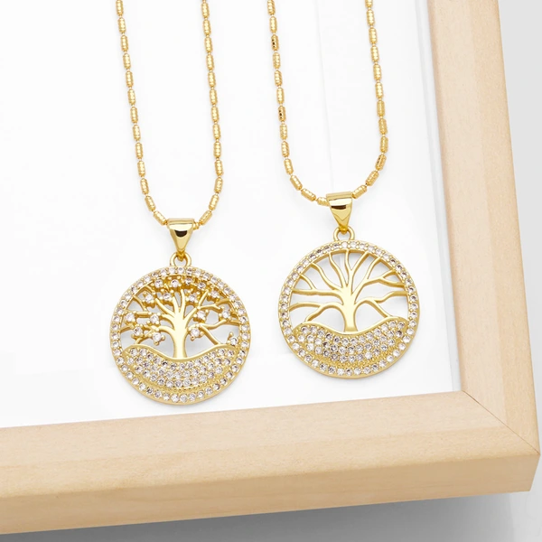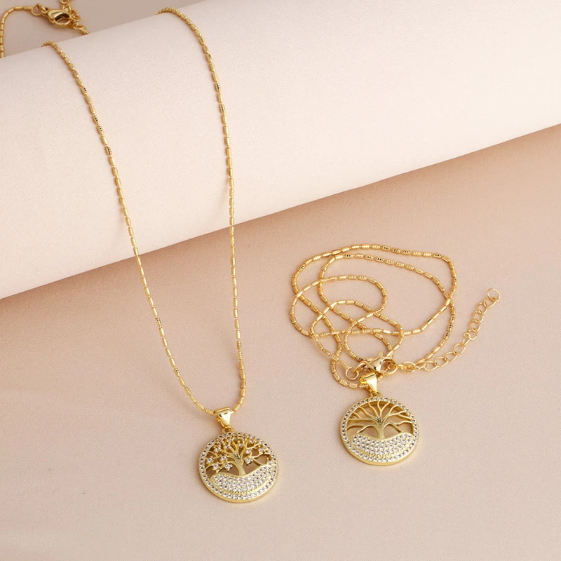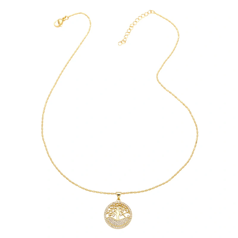 Collar con colgante de árbol de la vida, versátil, chapado en oro con circonitas, NKB853