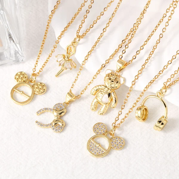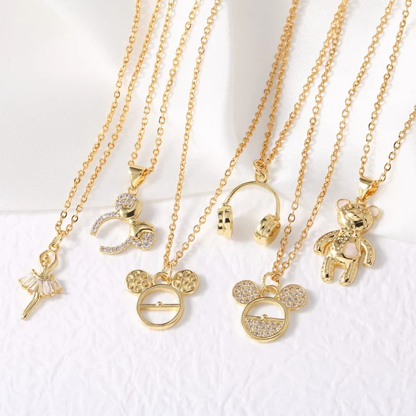 Collar con colgante de ballet de oso europeo y americano para mujer, chapado en oro, cadena de clavícula de Mickey Mouse NKP40